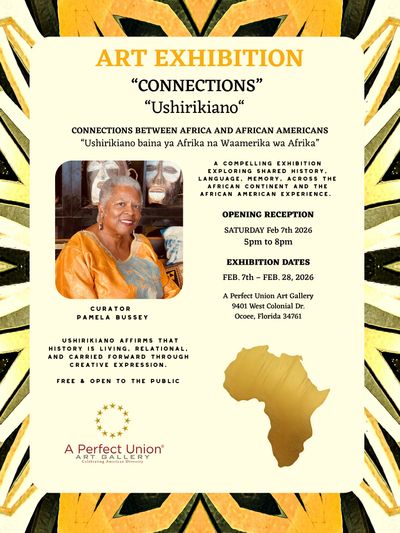 "Ushirikiano" explores connection, collaboration, and shared lineage between Africans and African Americans through the voices and visions of Central Florida artists whose heritage traces back to the African continent. “Ushirikiano,” the Swahili word for cooperation or collaboration, anchors the exhibition’s theme of unity across time, geography, and the African diaspora.